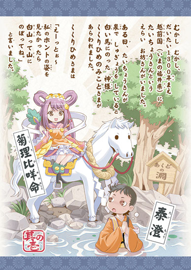 養老年中(奈良時代初期)この白山に僧侶(修験者・山伏)の泰澄が、登拝(白山は登山とは言わない)し苦難の末に辿りついた山頂の池の端で修行中のことであった。